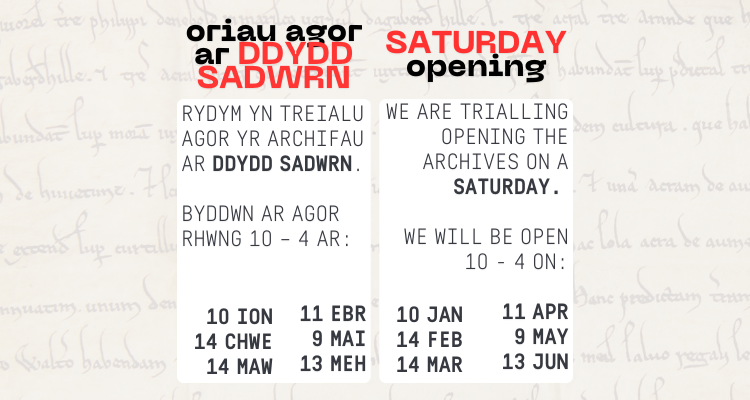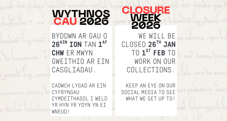 Dewiswch eich dogfennau gan ddefnyddio ein catalogau ar-lein, Hwb Archifau a Discovery a rhowch wybod inni beth hoffech chi ei weld. Bydd aelodau staff ar gael yn ystod eich ymweliad i’ch cynghori ynghylch y casgliadau cyn ac yn ystod eich ymweliad.