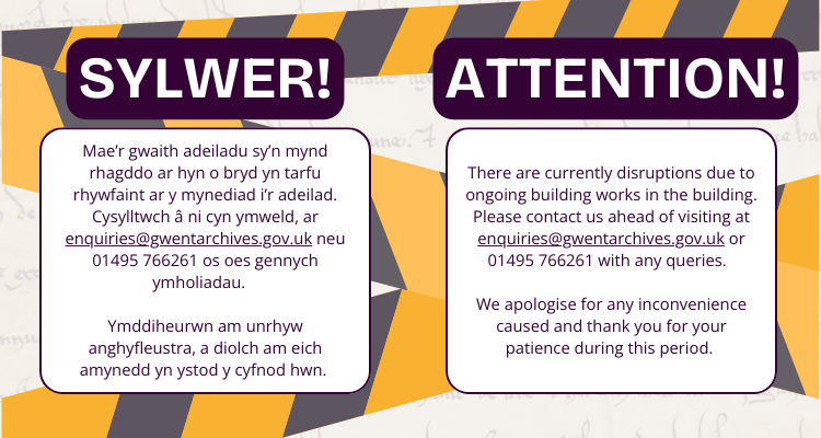Ymwelwch â ni yn Archifau Gwent i ddarganfod straeon difyr am bobl ac ardaloedd Gwent, wedi eu datgelu drwy gyfrwng cyfoeth o adnoddau archifol.